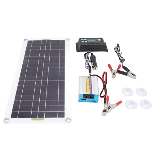 Starter Kit Pannello Solare, 12V a 220V 30W Pannello di Ricarica Solare Kit Caricabatteria Inverter Solare 220W per Escursioni in Campeggio(#1)