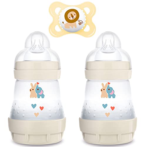 MAM Starter Set Uni//Anti Colic bottiglia 160 ml//incl. Tettarella misura 1 dalla nascita/incl. Mam, ciuccio in silicone "Skin Soft" per neonati da 0 a 6 mesi.