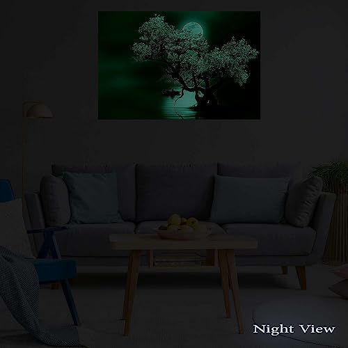 Startonight Quadro su Tela Decorazione Fiore Albero e Luna Bianco e Nero, Quadri Moderni Bianco e Nero Stampe Camere da Letto 60 x 90 cm