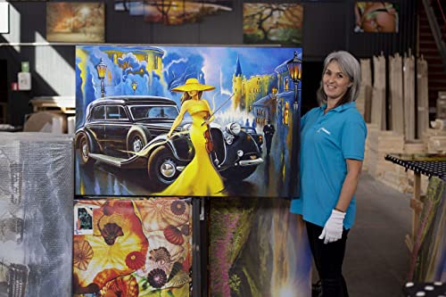 Startonight Quadro su Tela Retro Automobile Nera e Donna nel Colore Giallo - Grandi Quadri Moderni Astratti - Stampe Camere da Letto 80 x 120 cm