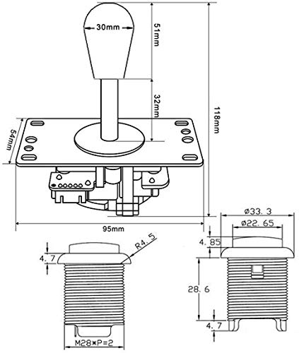 Dimensione del foro: Joystick - 24mm. Pulsanti grandi-30 mm. Pulsanti piccoli-24 mm