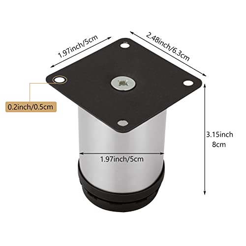 STARVAST Set di 8 piedini per mobili in acciaio inox, altezza 80 mm, diametro 50 mm, piedini regolabili per mobili, gambe del tavolo, altezza regolabile 0-10 mm