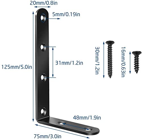 Starvast - 4 staffe di fissaggio ad angolo retto di 90 gradi, in ghisa, staffe per mensole, 125 x 75 x 20 mm, supporto ad angolo retto con 24 viti e 8 ancoraggi (nero)