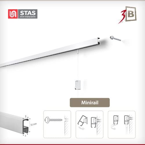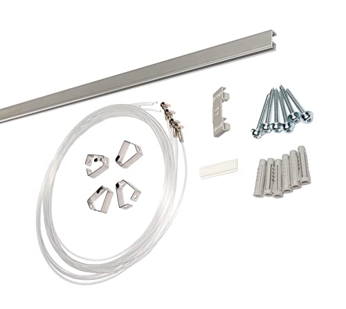 SET STAS MINIRAIL - Guide per appendere quadri con forza portante garantita, pronti da montare e compresi di tutti gli accessori!, Alluminio, Argento (alluminio), 200 cm (1 Schiene)