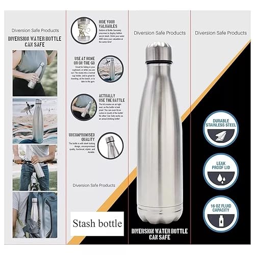 Stash Can Stash Can Stash Bottle Diversion Safe Storage Bottle Hide Key Secret Safe 750 ml/16 oz capacità (argento)