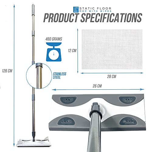 Mop statico per pulire i pavimenti. Può essere usato con panni asciutti o bagnati.