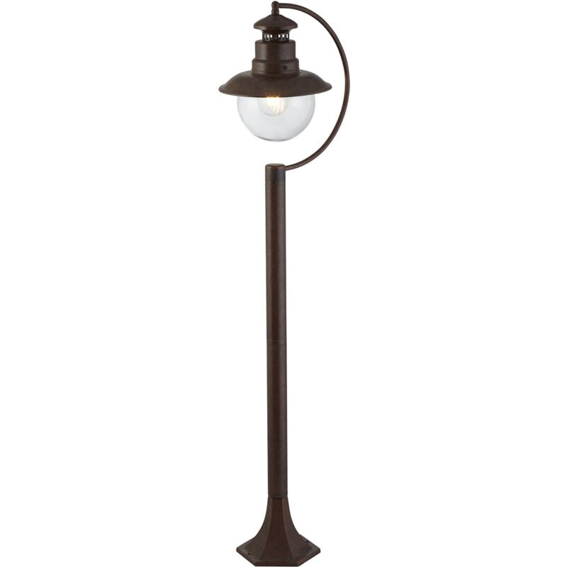 Collezione Stazione NO AD INTRUSI Perfettamente adatto per illuminare percorsi attraverso giardini consolidati o per illuminare aree specifiche del tuo giardino che desideri mettere in risalto. Il lampione da esterno Station è alto 1 metro ed è realizzato in metallo con una finitura marrone rustica. La lampada stessa è racchiusa in un paralume a sfera di vetro che mette in risalto alla perfezione una lampadina decorativa e illumina l'intera area circostante con un sottile bagliore bianco caldo. Questo articolo è classificato IP44 e completamente resistente agli spruzzi d'acqua per proteggerlo dagli elementi.