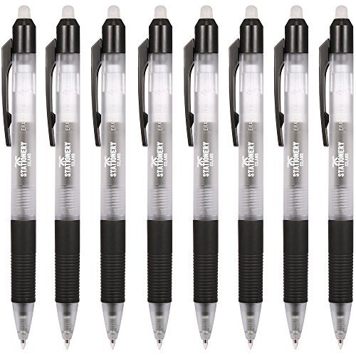 Stationery Island Penne Cancellabili Punta Retrattile 0,7mm - Penne a Scatto Confezione da 8, Colore Nero