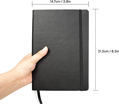 COPERTINA RIGIDA & CHIUSURA SICURA - Il nostro quaderno in A5 è rivestito da una copertina rigida ed elegante di finta pelle, con un elastico che terrà i contenuti del tuo quaderno al sicuro. Così potrà accompagnarti ovunque!