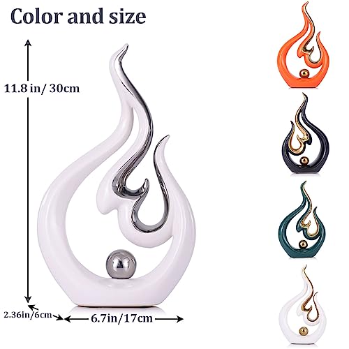 Statua astratta in ceramica bianca argento - Accento decorativo per soggiorno, sala da pranzo e ufficio - Centrotavola d'arte moderna per tavolino da caffè, arredamento porta TV