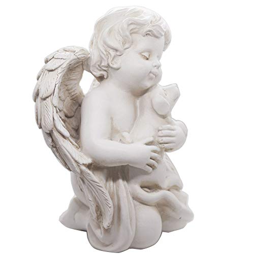 Descrizione: l'angelo cherubino tiene in braccio un cane con presenza calmante, angelo inginocchiato con cane statua aggiunge una bellezza tranquilla a qualsiasi arredamento, design retrò bianco vintage con dettagli delicati.