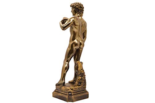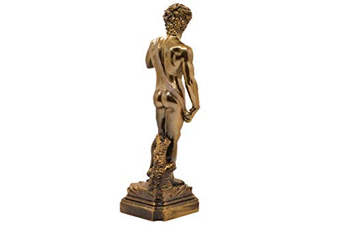 Statua David di Michelangelo color bronzo effetto lucido, Scultura artigianale, 100% Made In Italy in bicarbonato di calcio e resina colorata, Souvenir Italia, Arte Italiana. (Cm. 15)