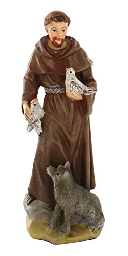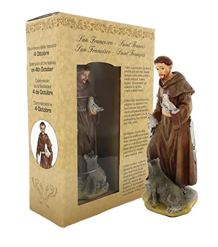 Statua di San Francesco da 12 cm in confezione regalo con segnalibro in IT/EN/ES/FR