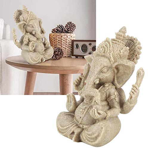 Statua di Ganesh, Resina arenaria Statua Indiana Ganesha Elefante Dio Statua Scultura Religiosa Artigianato per il feng shui e la decorazione Domestica Artefatto 11,5 x 10 cm