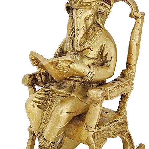 Statua in ottone Hindu Art Ganesha Dio seduto su una sedia a dondolo e leggere un libro 15,2 cm da Indian Accent