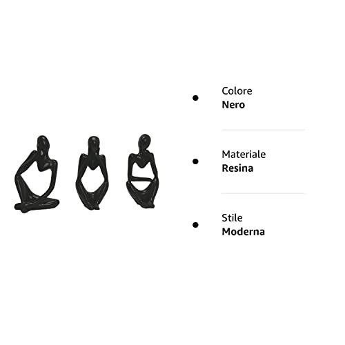 La Statua del pensatore set di 3, Scultura Statua Ornamenti Arte Moderna Scultura A Mano Kit Scultura Resina Astratta Pensatore Statua Figurine per la Decorazione del Desktop di casa Ufficio (Nero)