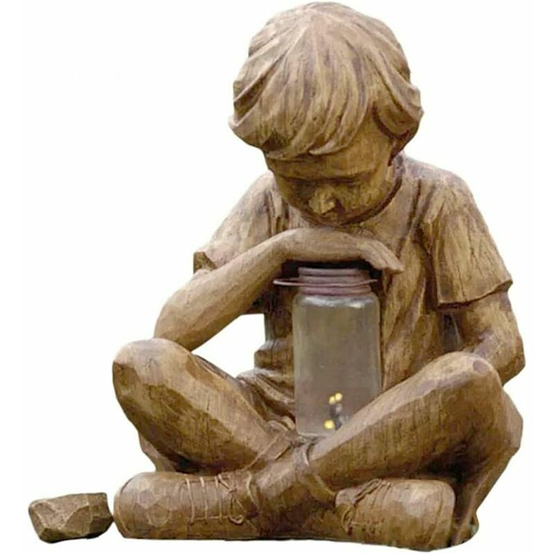 La squisita statua d'arte vintage può abbinarsi perfettamente alla tua altra decorazione o ambiente esterno Gli ornamenti da giardino con ricche finiture in legno antico completeranno le decorazioni tradizionali e porteranno diversi elementi nel tuo giardino. La statua del ragazzo è realizzata principalmente in resina naturale, che è robusta e durevole, non si sbiadisce facilmente dopo un uso a lungo termine La decorazione della scultura all'aperto può essere posizionata vicino alla porta.#39;