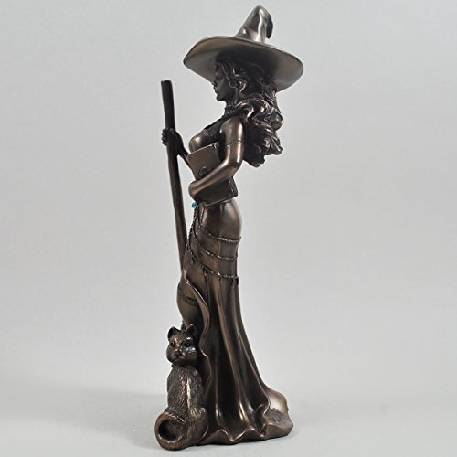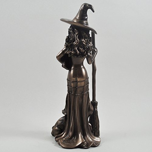 Statuetta ornamentale da strega e gatto nero color bronzo