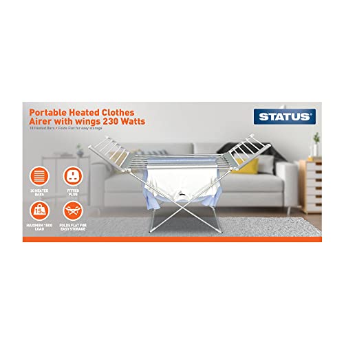 Status Portable riscaldato stendibiancheria con ali e 18 barre riscaldate, argento, 220 W