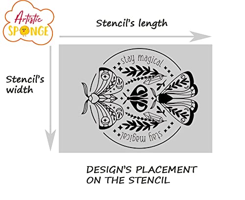 Stay Magical Moths - Stencil riutilizzabile, formato A5, A4, A3, decorazione spirituale, mistica, MG13, stencil riutilizzabile, formato A4, 210 x 297 mm, 21,1 x 29,7 cm