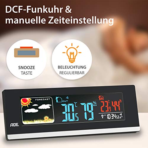 Stazione Meteo con Orologio,Sveglia,Sensore Esterno e Igrometro, Plastica, Nero, 21.5x7.5x2.9 cm