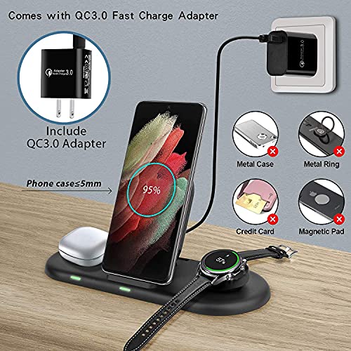 Stazione di ricarica 3 in 1 senza fili, stazione di ricarica induttiva, compatibile con Samsung Galaxy S22 Z Flip 3 S21 FE S21+ S20, Samsung Galaxy Watch 4 Galaxy Watch Active 2 S3 S4, Galaxy Buds Pro