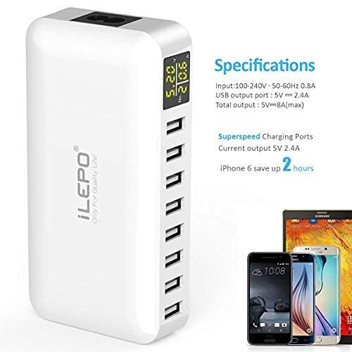 Stazione di ricarica USB Spina per caricabatterie 8 porte con display LCD 40W 8A Caricabatterie da parete portatile da tovalo per smartphone, tablet, altro