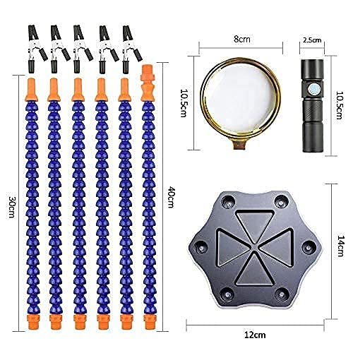 Sei mani flessibili flessibili: la stazione di saldatura flessibile ha 340 mm Sei mani flessibili e lente di ingrandimento su misura e mini torcia, facilmente posizionabili dove vuoi. Elimina la frustrazione delle mani d'aiuto tradizionali.