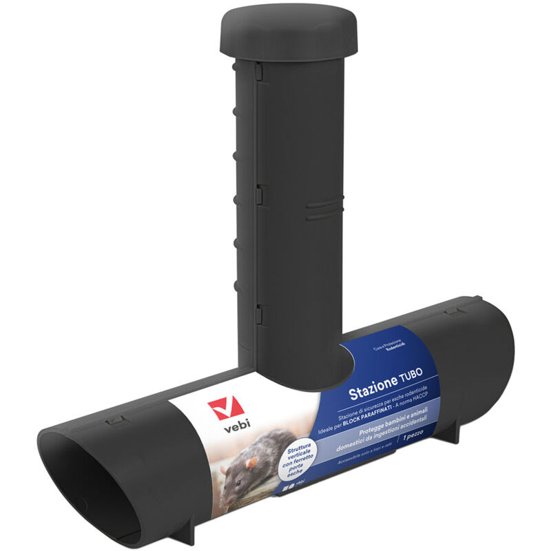 In plastica. Erogatore a struttura verticale a forma di T rovesciata per la distribuzione di esche in pasta fresca e blocchi paraffinati. L'erogatore è dotato di tubo interno con fermo per esche paraffinate e di ferretto porta esca per bloccare le esche in pasta fresca. Con tappo chiusura di sicurezza e speciale raccordo per rapido aggancio/sgancio. Soddisfa i requisiti di sicurezza in presenza di bambini ed animali domestici.