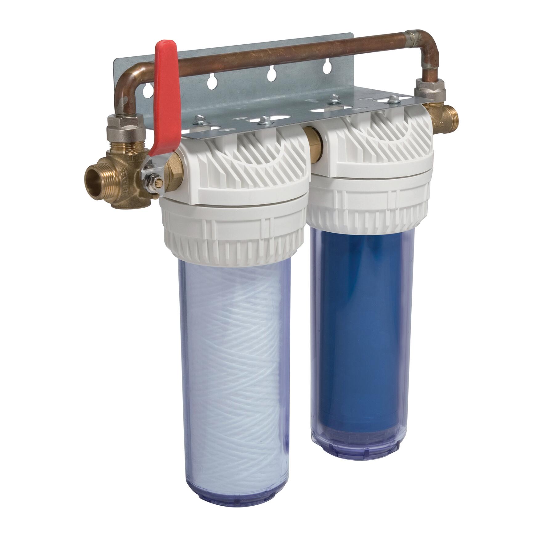 Kit duplex (filo avvolto-Sali polifosfati)attacco da 3/4" pollici, completo di valvola di sfiato, staffa di fissaggio, viti e tasselli, Chiave. Indicato per filtrare calcare in sospensione, limo, sabbia, sedimenti metallici, ruggine