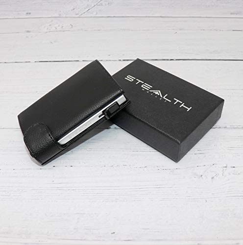 Stealth Wallet - Portafoglio Minimalista con Porta Carte di Credito Pop-up e Scomparti per Contanti - Portafogli Leggero con RFID Blocco (Alluminio Argento con Pelle Nera e Tasca Portamonete)