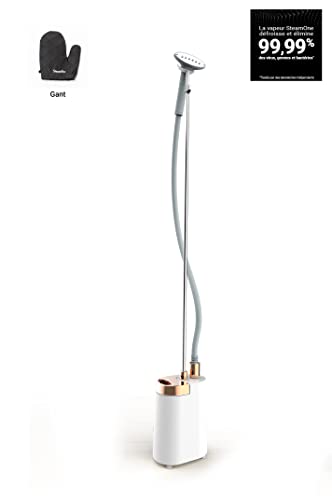 SteamOne Minilys Stiro Verticale, Compatto, Piastra in Acciaio Inox, 1900 W, Serbatoio da 0.9 L, Guanto di Protezione dal Calore, Bianco