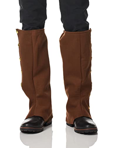 Step into futuristic style with our Steampunk Brown Spats! These handsome Brown Spats are brown faux suede and feature classic Victorian era gold button details along the side. Spats should fit comfortably over the ankle and around your instep and stretch up to just below the knee. One size Steampunk Brown Spats fit most teens and adults.