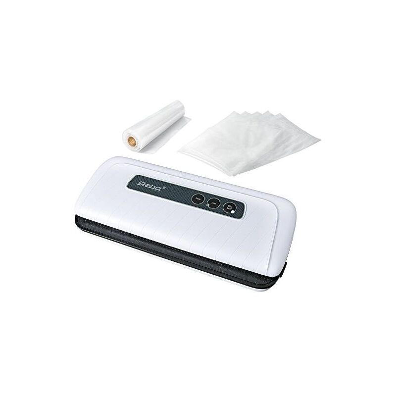 Steba VK 4. Colore del prodotto: Nero, Bianco, Livello massimo di vuoto: -0,8 mbar, Funzioni della macchina sottovuoto: Solo sigillatura. Potenza: 110 W, Tensione di ingresso AC: 230 V. Larghezza: 360 mm, Profondità: 150 mm, Altezza: 80 mm. Tipo di imballo: Scatola