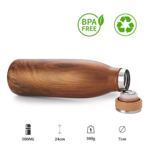 STECHO Borraccia Termica 500ml, Bottiglia d'Acqua Acciaio Inox| Borracce Termiche Doppia parete isolato| Termica Bottiglia Senza BPA per Bambini, Scuola, Sport, Campeggio, Yoga, Palestra, Ciclismo