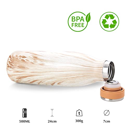 STECHO Borraccia Termica 500ml, Bottiglia d'Acqua Acciaio Inox| Borracce Termiche Doppia parete isolato| Termica Bottiglia Senza BPA per Bambini, Scuola, Sport, Campeggio, Yoga, Palestra, Ciclismo