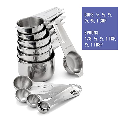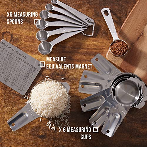 Set completo - Il nostro set completo comprende 6 misurini in acciaio inox (¼, ⅓, ½, ⅔, ¾, 1 tazza) e 6 cucchiai (1/8, ¼, ½, 1 cucchiaino, ½, 1 cucchiaio), 2 anelli a forma di D e un magnete con 1 le misure equivalenti.
