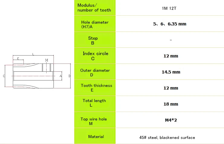 Steel Spur gear 1 Module 12 Teeth 1M 12T Convex motor gear 5mm 6mm 6.35mm A1 Top silk hole