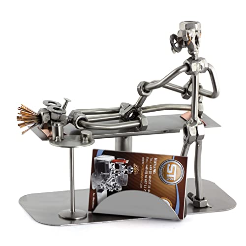 Steelman24 I Omini di Viti Fisioterapista con Portabiglietti da Visita con Piastra di Incisione Personale I Idee Regalo I Soprammobili in Metallo