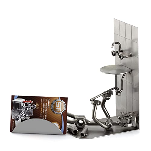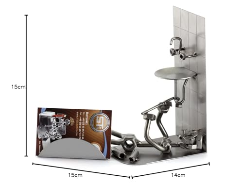 Steelman24 I Omini di Viti Idraulico con Portabiglietti da Visita I Idee Regalo Originale I Soprammobili in Metallo I Modellino