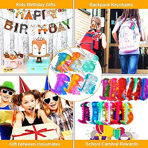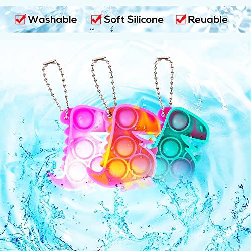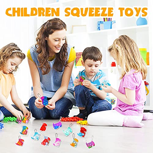 Steemjoey 12 Pezzi Mini Pop Fidget Portachiavi,Silicone Colorato Keychain, Dinosauro Spingere Bolle Ansia Sollievo dallo Stress Sensoriale Prima Educazione Giocattoli Regalo per Bambini Adulti