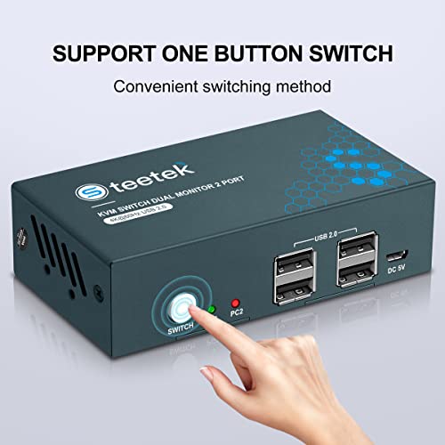 Steetek HDMI+DisplayPort KVM Switch 2 PC 2 Monitor 4K@60Hz, USB2.0, KVM Dual Monitor con USB2.0, DP 1.2, HDMI 2.0, Interruttore a pulsante, KVM Switch 2 Monitor con 2 cavi HDMI e 2 PD e 2 cavi USB