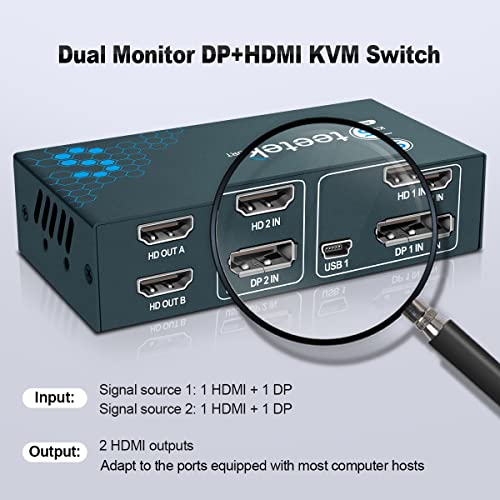 【Protocollo USB2.0, EDID adattativo】 Questo Switch Displayport HDMI dispone 4 porte USB2.0. KVM Switch Dual Monitor compatibile con una vasta gamma di dispositivi USB2.0, come stampanti/scanner. Il KVM HDMI 2 Monitor regola automaticamente l'EDID per adattarsi a diverse e complesse ambientazioni applicative.