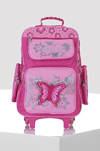 Stefano - Trolley da viaggio per bambini, colore: rosa/rosa con motivo a farfalle