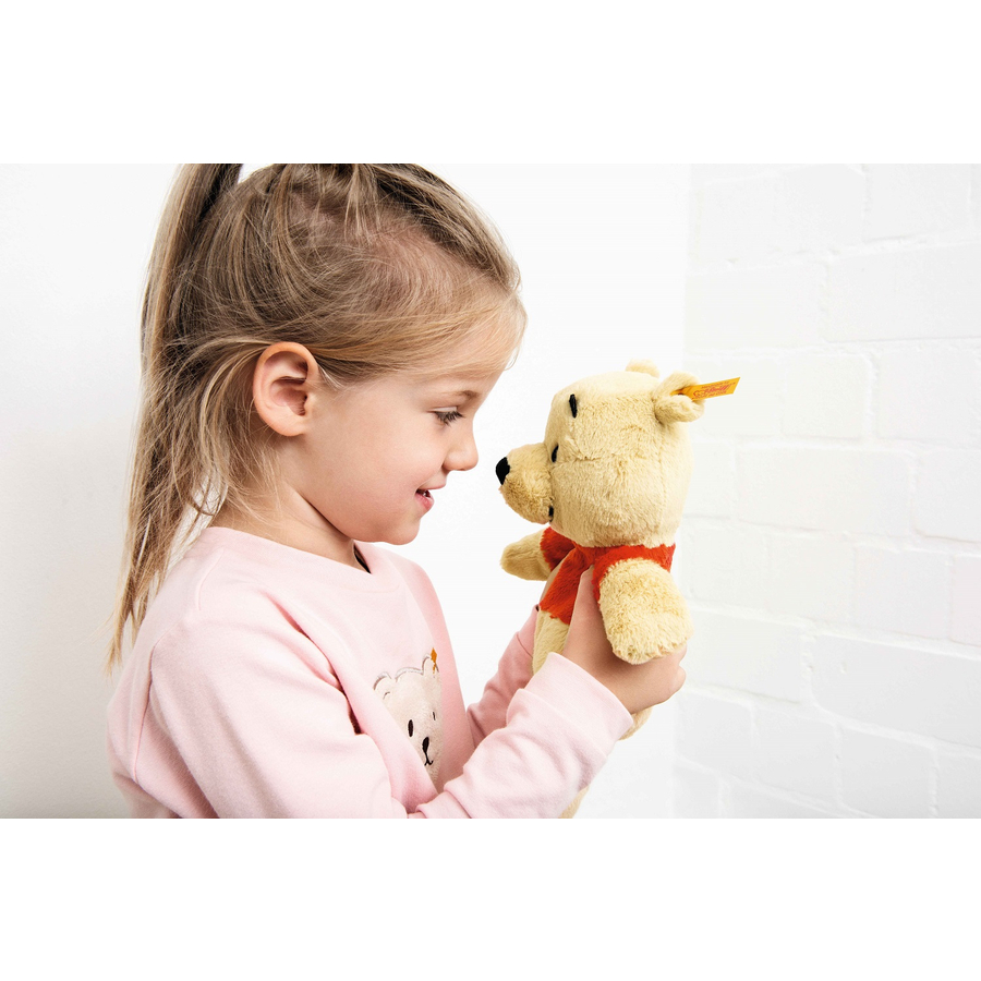 i sacchetti di pallini nelle braccia, nelle gambe e nelle natiche rendono la presa eccitante e la seduta confortevole. Uno sguardo dai suoi occhi rotondi ed ecco una nuova idea di gioco. Winnie the Pooh ama giocare! Dettagli del prodotto: t Dimensioni (altezza): 29 cm Colore: Biondo Materiale: 100% poliestere Imbottitura: Sintetico Con occhi di plastica Con bottone nell'orecchio in acciaio inossidabile ©Disney. Basato sulle opere di Winnie the Pooh di A.A. Milne e E.H. Shepard Suggerimento per la cura: 30°C lavaggio delicato Non candeggiare Non asciugare in asciugatrice Non stirare Non lavare a secco