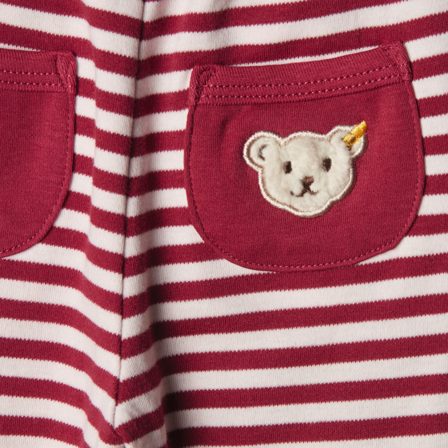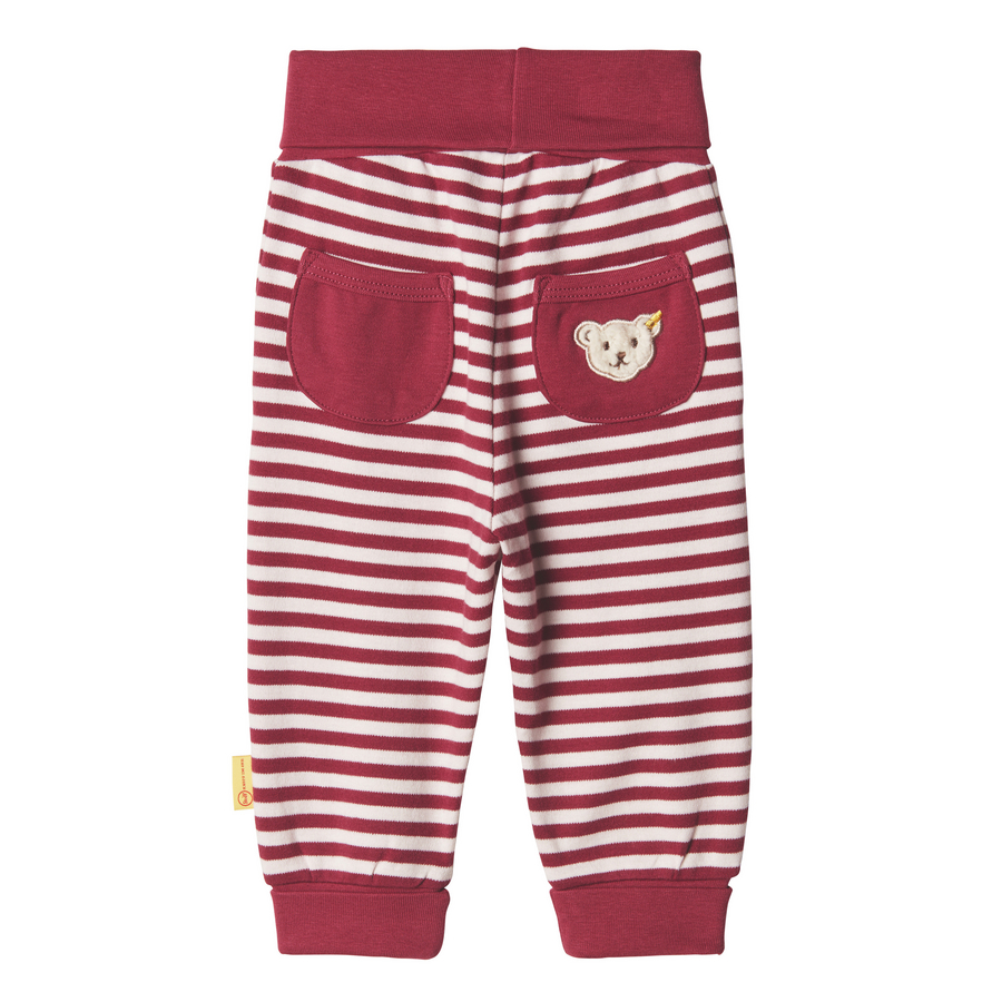 Esclusiva moda per bambini di Steiff ! Solo il meglio è abbastanza buono per i bambini - la Steiff filosofia si riflette anche nella moda per bambini. La sofisticata collezione di outfit Design dai colori classici e lusinghieri. Quando fuori fa più freddo, questi pantaloni da jogging ti vizieranno con un bel fattore di coccole. Il sudore coccolone ruvido all'interno assicura un perfetto comfort e un calore meraviglioso. La vestibilità casual, la cintura morbida e i polsini flessibili a costine all'estremità delle gambe ispirano le ragazze attive con una perfetta vestibilità e libertà di movimento anche durante le attività più lunghe. Ampie tasche completano il look allegro. Blocks strisce in calde tonalità di rosso sono combinate come un tocco di colore. In tutti i casi, un morbido Steiff motivo di orsacchiotto accompagna ovunque il vostro piccolo. Con garanzia di comfort ! Dettagli del prodotto: Materiale: 100% cotone Lavabile fino a 40 °C Adatto per essiccatoi
