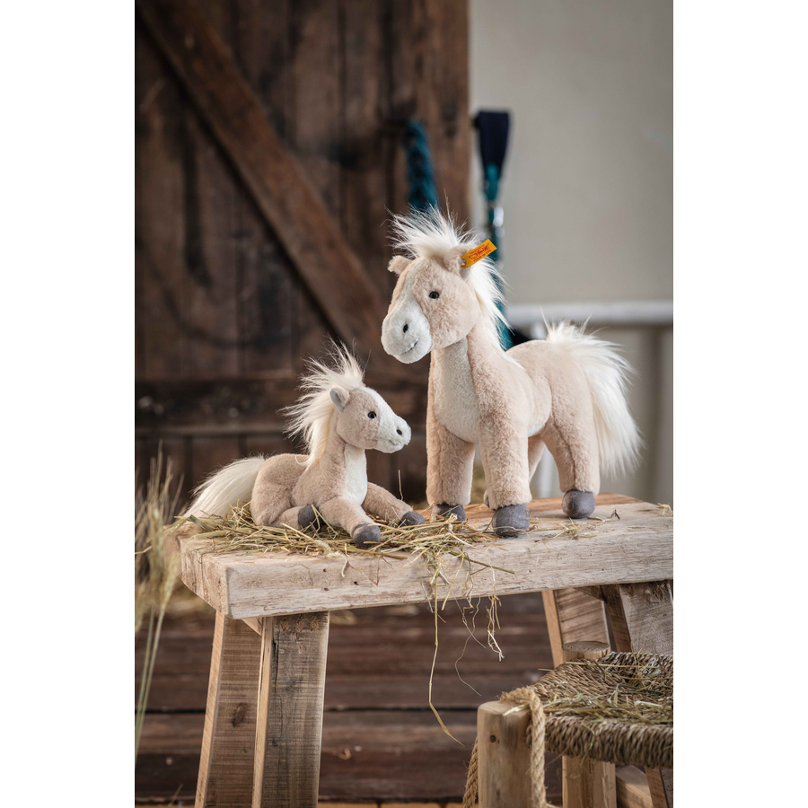 Dettagli del prodotto: Età: da 3 anni in su Con gambe lunghe e allampanate con le quali può essere portata in giro volentieri Con il suo morbido peluche beige e bianco, la criniera e la coda pelose e la simpatica espressione del viso, Gola rende felici tutti gli amici cavallini Alto 18 cm, il cavallino sdraiato è della misura giusta per essere portato ovunque con sé Posizione: sdraiato Morbido peluche Con occhi di plastica Con bottone in acciaio inossidabile nell'orecchio Dimensioni e peso: Dimensioni da assemblato (lunghezza x larghezza x altezza): 18 x 22 x 9 cm. Peso: 0,08 kg Materiale e cura: Materiale: 100% poliestere Imbottitura: imbottitura in materiale sintetico Cura: lavaggio delicato a 30°C, non candeggiare, non asciugare in asciugatrice, non stirare, non lavare a secco.
