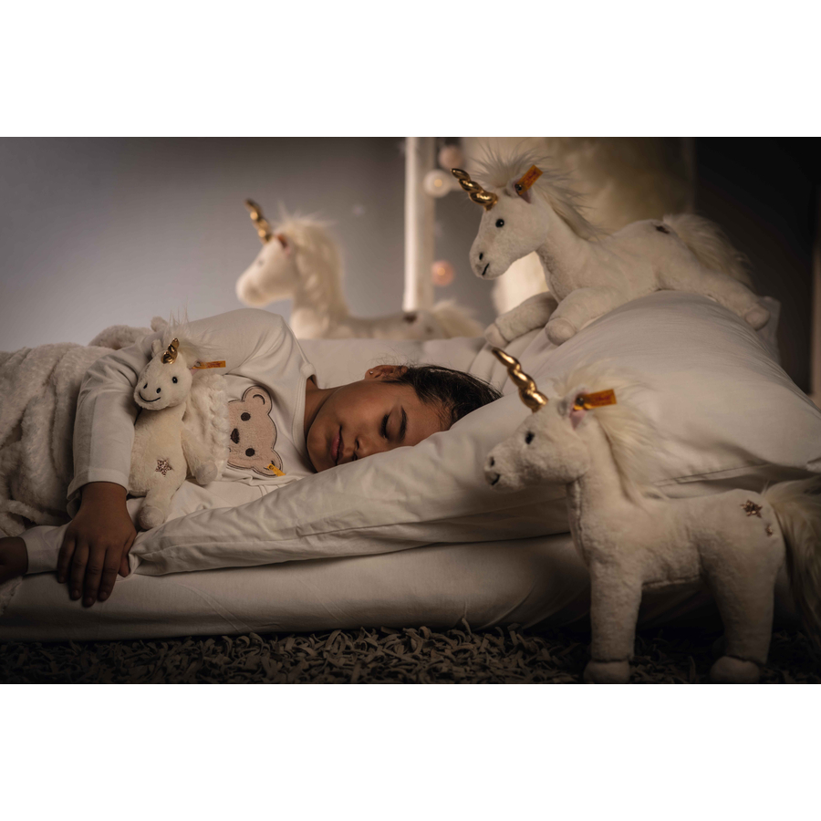 Dettagli del prodotto: Età: da 3 anni Con pulsante nell'orecchio in acciaio inossidabile Con sacche di granulato nella pancia e negli zoccoli Con occhi di plastica Grande esperienza per i bambini Due scintillanti stelle golden e sul lato sinistro della natica Posizione sdraiata Porta i bambini in un mondo pieno di magia e incanto Dimensioni e peso: Dimensioni da assemblato (lunghezza x larghezza x altezza): 27 x 15 x 12 cm Peso: 0,18 kg Materiale e cura: Materiale: 100 % poliestere, imbottitura in materiale sintetico. Istruzioni per la cura: lavabile in lavatrice a 30°C, non candeggiare, non asciugare in asciugatrice, non stirare, non lavare a secco.