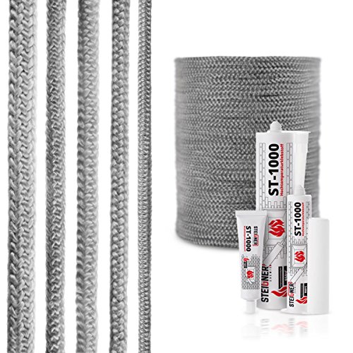 Cordone isolante di alta qualità con adesivo ST-1000 resistente al calore - sigillante resistente a temp. fino a 550 ° C, adesivo resiste a temp. fino a 950 ° C - in fibra di vetro - colore: Girgio scuro