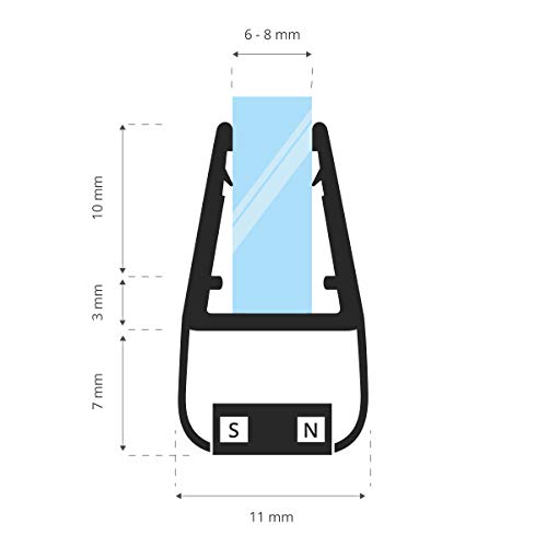 Qualità specializzata: prodotto nell'UE - Guarnizione magnetica - per vetro con spessore da 6 mm a 8 mm uso universale, per qualsiasi tipo di doccia - protezione affidabile contro le perdite d'acqua